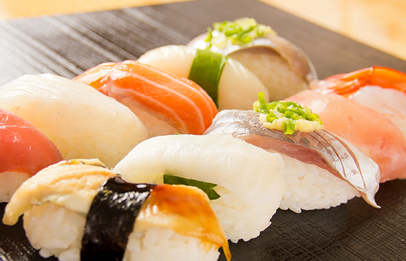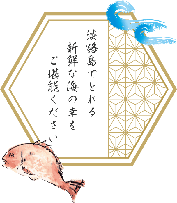 お寿司をはじめとした魚料理には、瀬戸内海の豊かな自然環境で育った新鮮な魚介類を使用。荒波の中、豊富な餌を食べて育った魚は身の引き締まりが格別です。